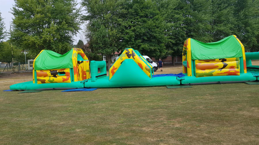 The assault course can be broke down into sections as we like to offer our customers a choice, so now you can just pick and choose your sections . This is a 60ft option . We offer 2 slides and a run through but what to change it then simply pet us know